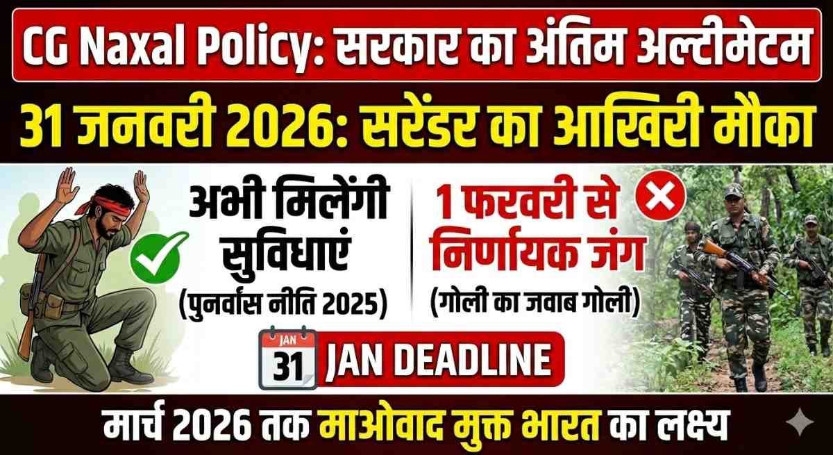 CG Naxal Policy: माओवादी हिंसा के खिलाफ चल रही मुहिम में सरकार अब निर्णायक चरण में प्रवेश करने जा रही है। केंद्र और राज्य सरकार ने स्पष्ट कर दिया है कि 31 जनवरी 2026 तक आत्मसमर्पण करने वाले माओवादियों को ही पुनर्वास योजनाओं का लाभ मिलेगा। इसके बाद यानी 1 फरवरी 2026 से आत्मसमर्पण की नीति प्रभावी रूप से समाप्त कर दी जाएगी और इसके बाद सरेंडर करने वाले माओवादियों को किसी भी तरह की पुनर्वास सुविधा नहीं दी जाएगी।