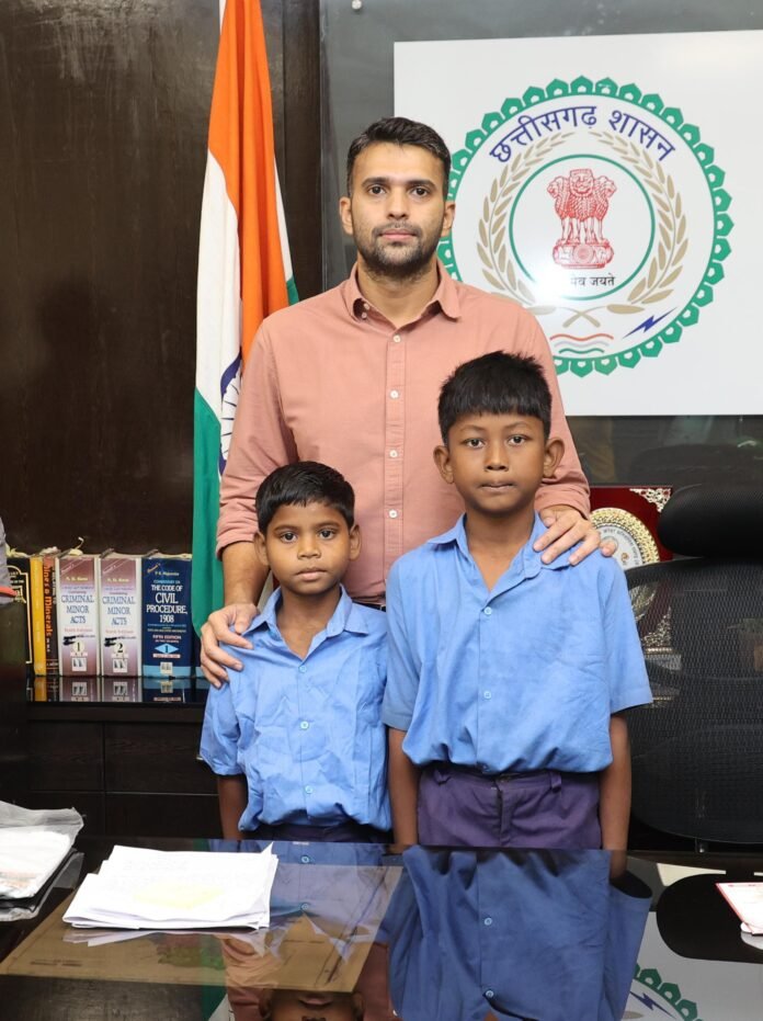 Raigarh News: कलेक्टर मयंक चतुर्वेदी ने आज जिला कलेक्टोरेट में दो साहसी बच्चों राकेश मिंज और आर्यन खेस से भेंट कर उनके अदम्य साहस की सराहना की। इन दोनों बच्चों ने अपने साहस और सूझबूझ से 5 वर्षीय बालक दादू मिंज को नाले के बहते पानी में डूबने से बचाकर उसकी जान बचाई थी।