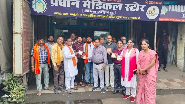 कार्यक्रम के दौरान भाजपा कार्यकर्ताओं ने पर्चे वितरित कर GST रिफार्म की बारीकियां समझाईं और लोगों से अधिक से अधिक लाभ उठाने की अपील की।