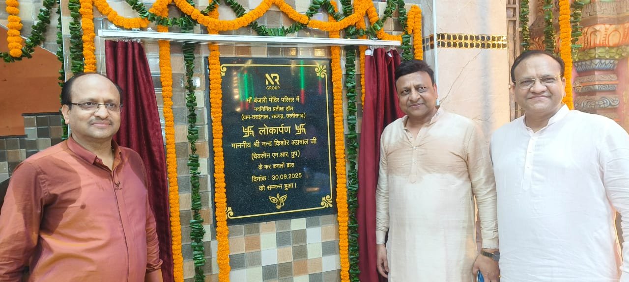 Raigarh News। नवरात्रि के पावन अवसर पर रायगढ़ जिले के तराईमाल स्थित सिद्धपीठ माता बंजारी मंदिर परिसर में एक नई सौगात जुड़ गई है। समाजसेवी और उद्योगपति संजय अग्रवाल (एन आर ग्रुप) व उनके परिवार ने भक्तों की सुविधा के लिए एक सर्वसुविधायुक्त प्रतीक्षा हॉल का निर्माण करवाया, जिसका लोकार्पण एन आर ग्रुप के चेयरमैन नंदकिशोर अग्रवाल ने गरिमामय समारोह के तहत किया।