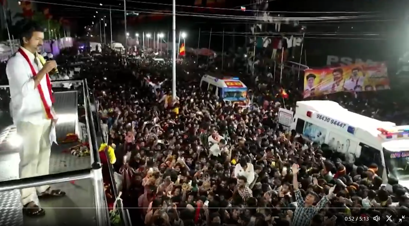 रैली के दौरान 9 साल की एक बच्ची लापता हो गई। विजय ने खुद कार्यकर्ताओं से बच्ची की तलाश में मदद करने का अनुरोध किया। पुलिस और आयोजक तुरंत सक्रिय हुए और सुरक्षा व्यवस्था कड़ी कर दी गई।
